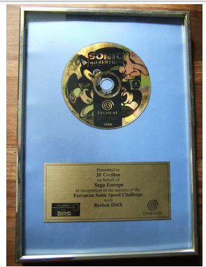 Sega-Sonic-Speed-Challenge-framed-award-RARE-ONE-OF-A-KIND-Dreamcast-Reebok-e...
