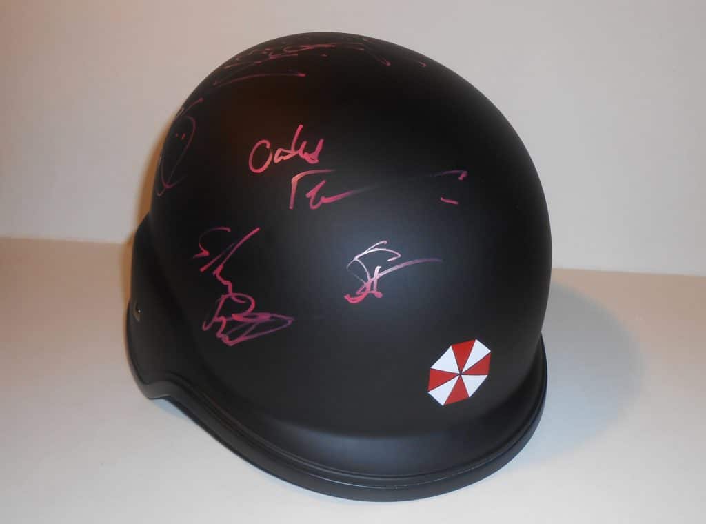 Resident-Evil-Retribution-Helmet-SIGNED-by-cast-x7-Milla-Alice-Sienna-Wesker-...