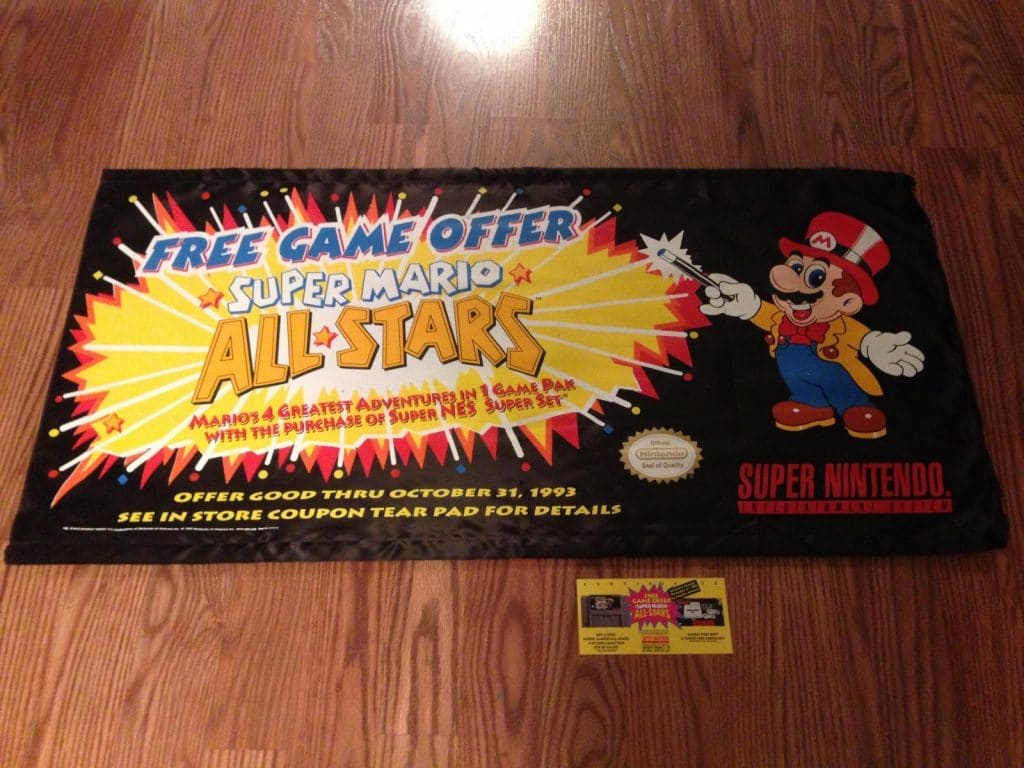 RARE-VINTAGE-Mario-Riding-Yoshi-2-Sided-Store-Display-Sign-Super-Nintendo-SNE...