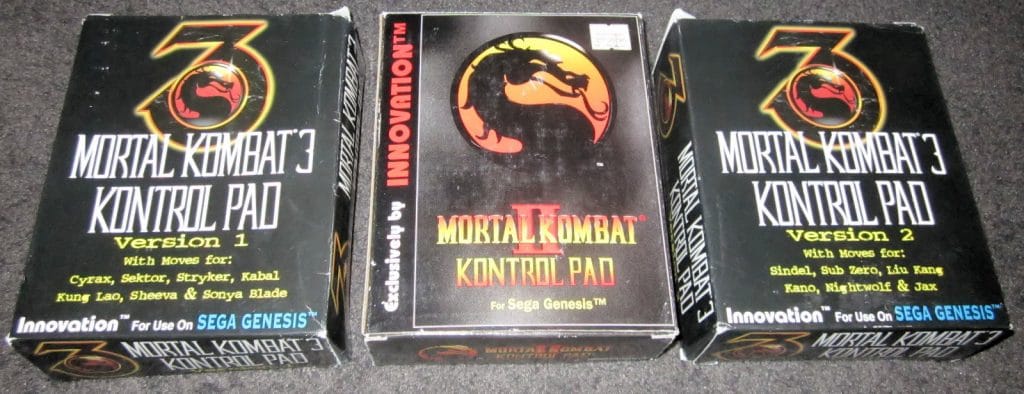 The Mortal Kombat Kontrol Pads by Innovation are third-party six-button controllers for the Sega Mega Drive, complete with added turbo features. It was designed to assist players with the Mega Drive versions of Mortal Kombat, having a selection of each character’s moves mapped to extra buttons. The controller actually uses cartridges containing move data which slot into the back.