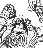 Over the course of September and October the 1UP team started to carry sketchbooks – to the Penny Arcade Expo, Tokyo Game Show, developer offices, etc. The goal was to collect as many pen and pencil sketches as possible from people in the game industry.