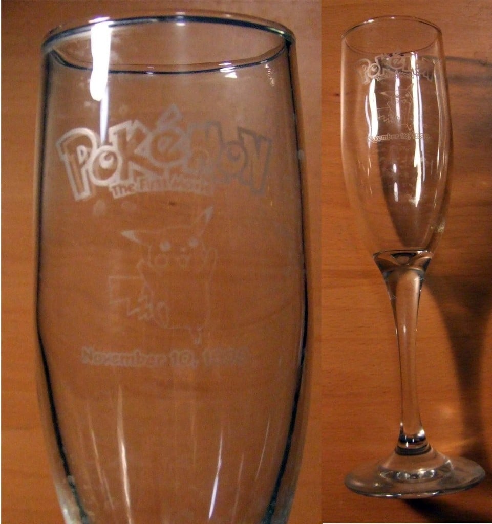 Pokemon Champagne Flutes – Pikachu engraved on it, was to commemorate the opening of the 1st Pokemon movie.