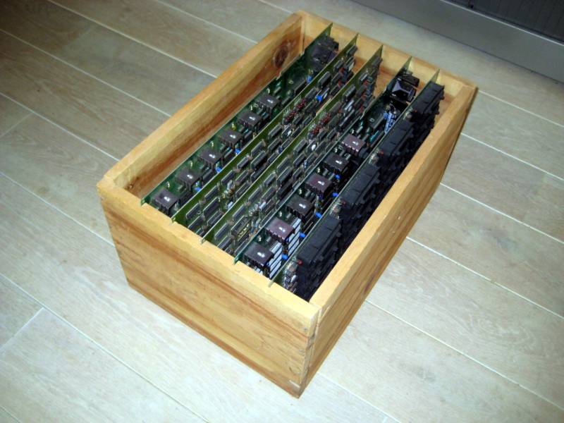Included with the boards are two binders filled with all sorts of technical documentation. The five pcbs are stored in a wooden crate.