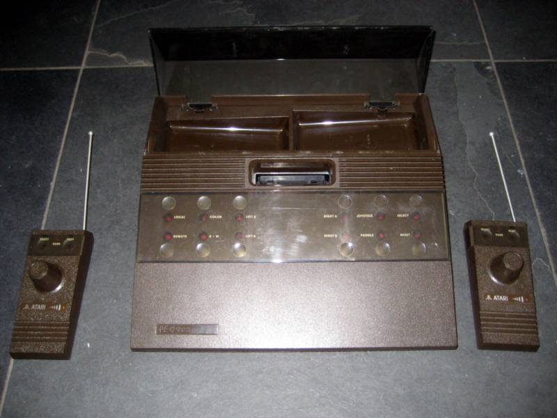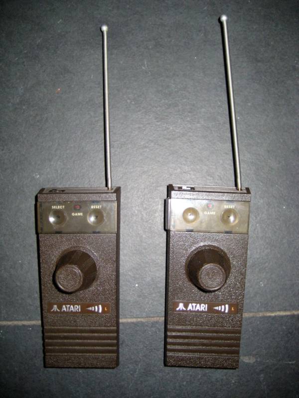 Atari decided it was time to add some new bells and whistles to its Atari 2600 Video Computer System. The new features would be a brand new console system with a sleek new wedge look and the newest feature of all… they made it wireless. The joysticks are simply amazing, they fit in the palm of your hand fairly comfortably and the most amazing part about these new joysticks is the features built in. The joystick is a standard 8 position joystick, but it is also a 270 degree paddle controller built into the same stalk!!! The unit also had select and reset buttons right on the joystick as well. It makes me wonder why this joystick wasn’t re-engineered back into a hardwired version and used on the 5200, this was THE perfect joystick, far superior to the current 5200 analog joystick in control, feel and features.