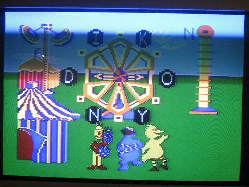 Though the game is called Muppets Go Round, it actually features Seseme Street Characters, which admirably are technically Muppets (Both are Jim Henson creations). Characters included are Bert, Big Bird, Grover, Cookie Moster, and more