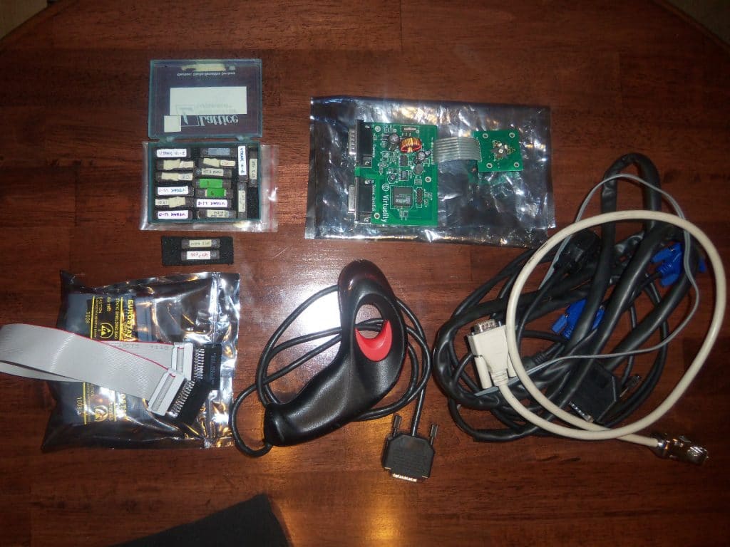 Since it was in it’s Prototype stage and was eventually dropped for the higher resolution Blue/Gray set-up it does have a few minor issues from time to time. Seller has replaced the original ribbon cable connector that connects the Jaguar console to the VR tracker, and includes three new spare connectors. Sometimes the headset shows a double screen, which seller thinks is a minor short. You will need an Atari Jaguar console with hookups and a working controller and also an extra power supply for the tracker The only game released that works with the VR setup is Missile Command 3D which is included boxed and complete. Zone Hunter was rumoured complete but hasn’t been found aside from a useless dead Alpine Board long ago. Also included in this lot is a prototype Space Joystick PCB and a Jaguar VR gun and a few other items.