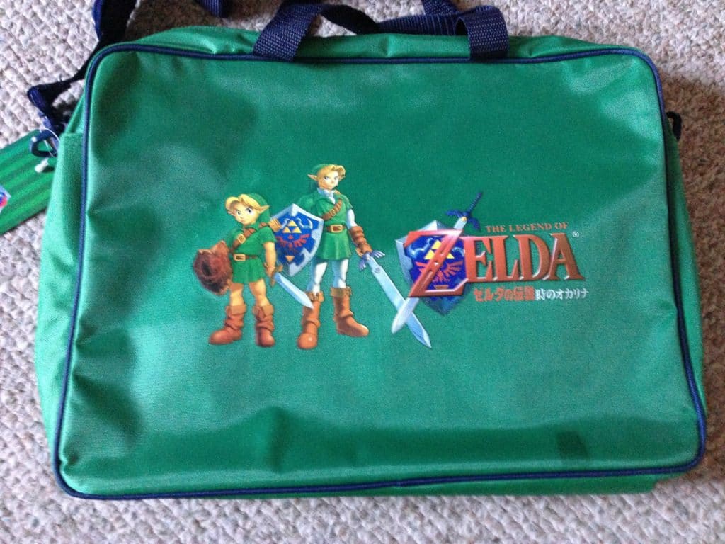 1998 Nintendo Zelda Ocarina of Time Bag Suit Case – I have no idea why this bag is so hotly contested. Perhaps it’s the cute Hylian Shield buckle?