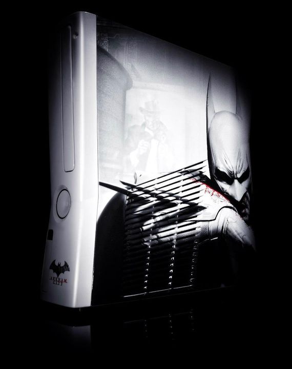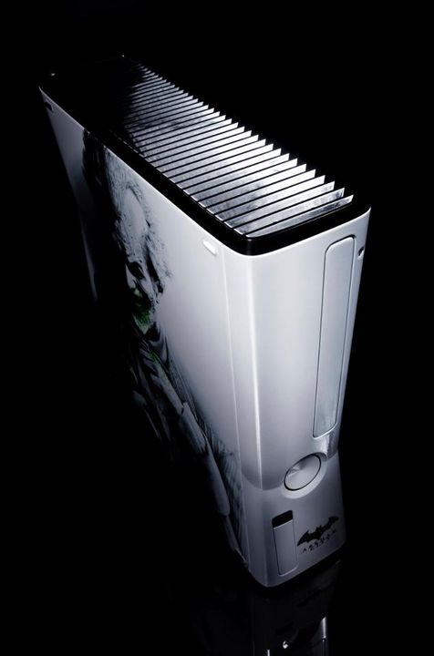 This is airbrushed Batman Arkham City themed XBOX 360 with Joker on one side and Batman/Two-Face on the other.