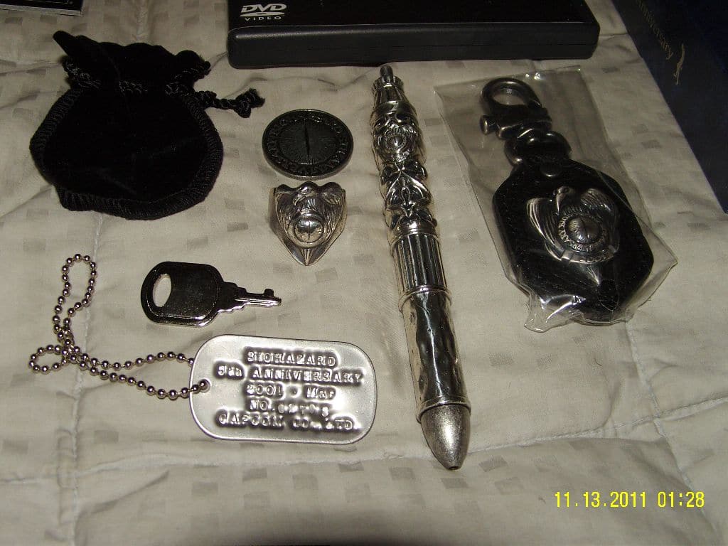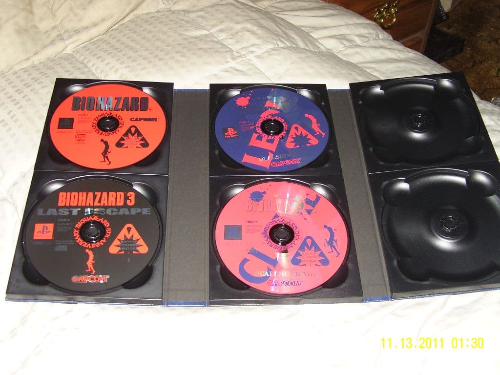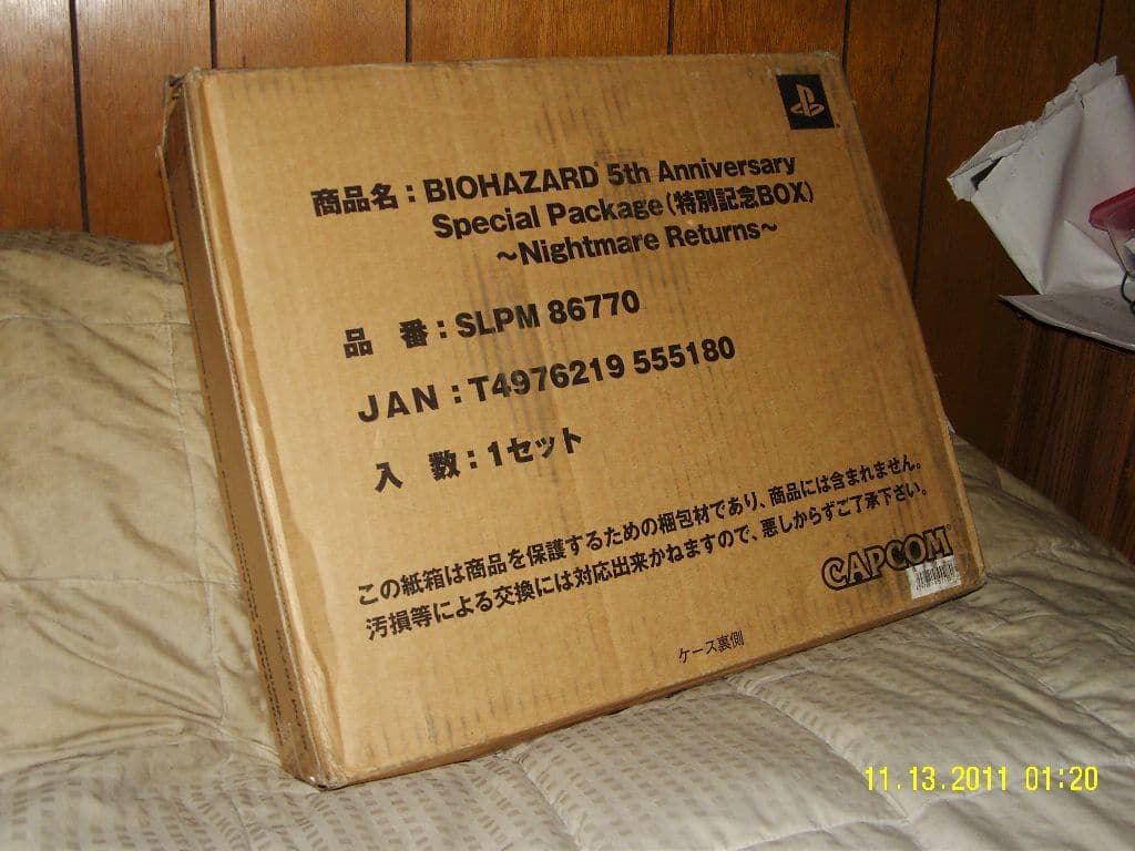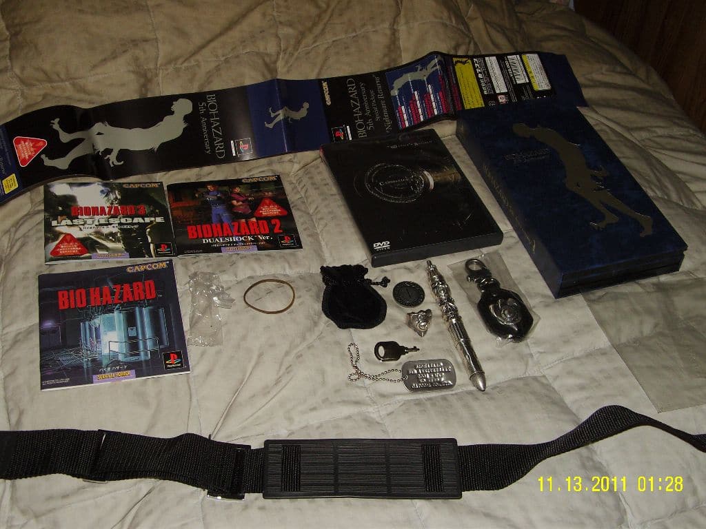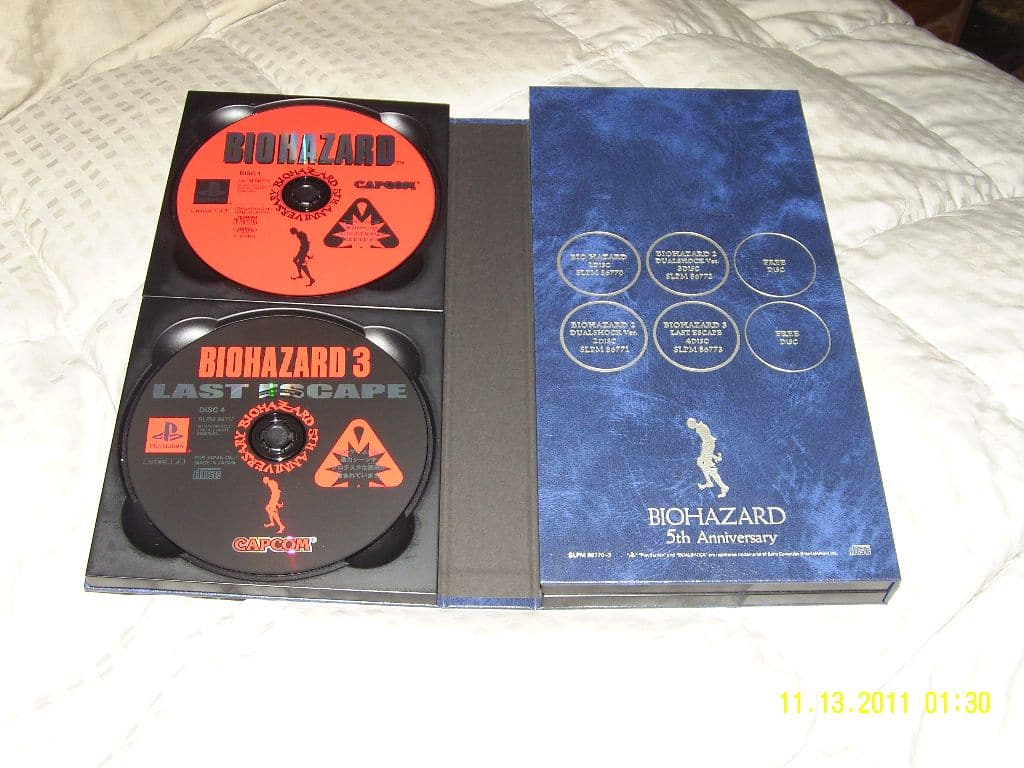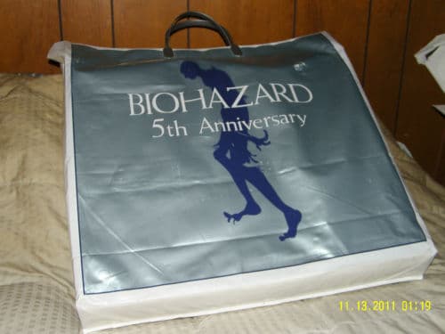I am selling my like new Biohazard 5th Anniversary Nightmare box set. I imported this from japan several years ago as a collectors item. Its rare that they sell these days with the outer sash, as well as the Biohazard logo branded bag. The bag has suffered some minor cosmetic damage over the years and one of the feet on the case itself was damaged lightly during shipping. I have provided pictures to show these areas. This set is very hard to come by now and is very sought after, for the fact that the Playstation 1 discs have custom branding which is exclusive to this release. This is numbered 2795/10,000 See the pictures below!