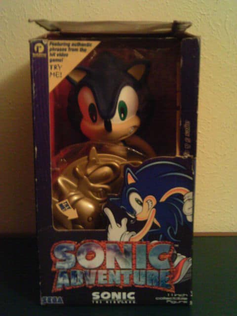 Sega Sonic the Hedgehog Adventure ReSaurus Action Figure – Made in 1999 by ReSaurus to promote Sonic Adventure and was a Toys R Us exclusive. It comes with a sound base with a button on it that, when pressed, will say phrases Sonic says in Sonic Adventure.