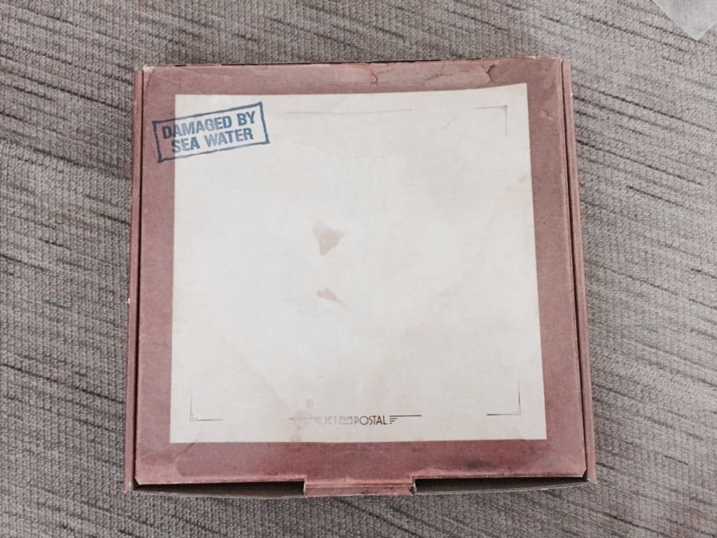Hi all, it’s Kim again. Today I want you to check out this super cool press kit that I was lucky enough to turn up on the bay. This is the official, ultra-rare BioShock Press Kit for the PS3/Xbox 360. The kit comes in a box that has a distressed look, making it appear to have been banged around a bit and is marked as “DAMAGED BY SEA WATER.”