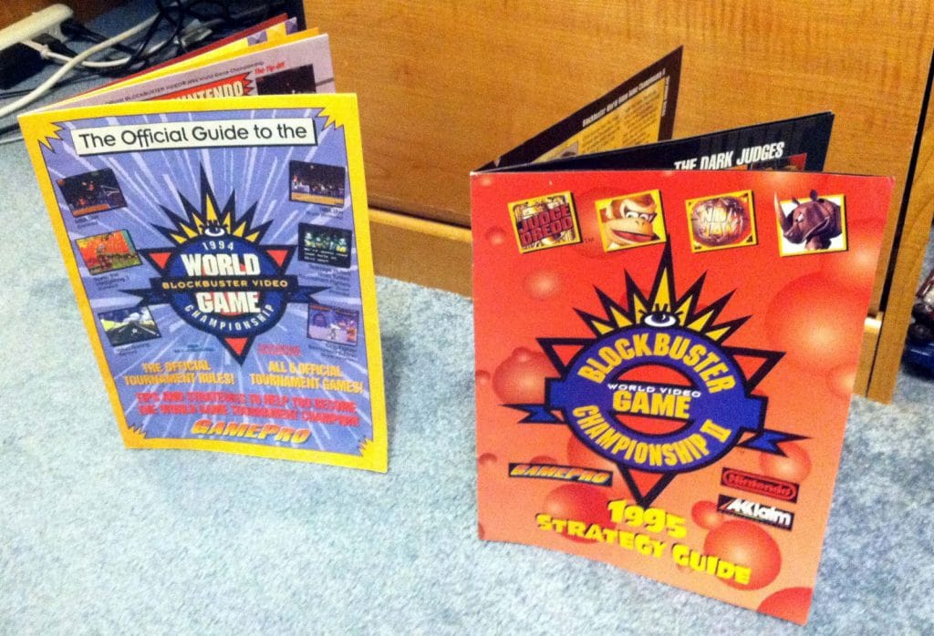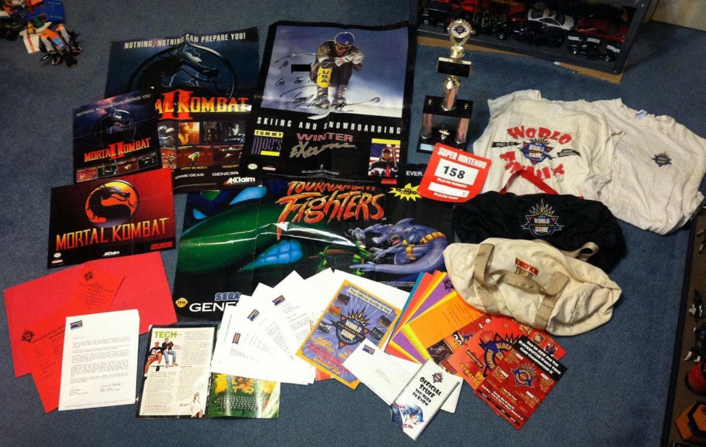 The reason I’m bringing all of this up is because I came across this listing on eBay: Blockbu1ster World Video Game Championship 1994 SNES LOT. This guy was his state champ and went onto the Blockbuster Video Game National Championship in 1994. He put up every piece of memorabilia he has, documents, brochures, t-shirts, etc., even his trophy. This would be an interesting collection to have, maybe a little like something you might expect to see in a gaming museum. It’s not cheap, but it is one of a kind for sure.