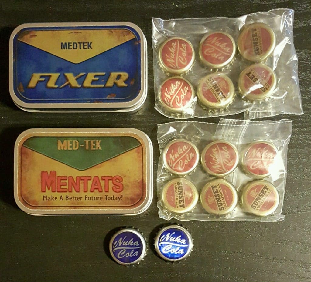 - Fallout Merchandise Mentats & Fixer tins + Nuka Cola caps – So much win here guys! See pics at the bottom of the post.