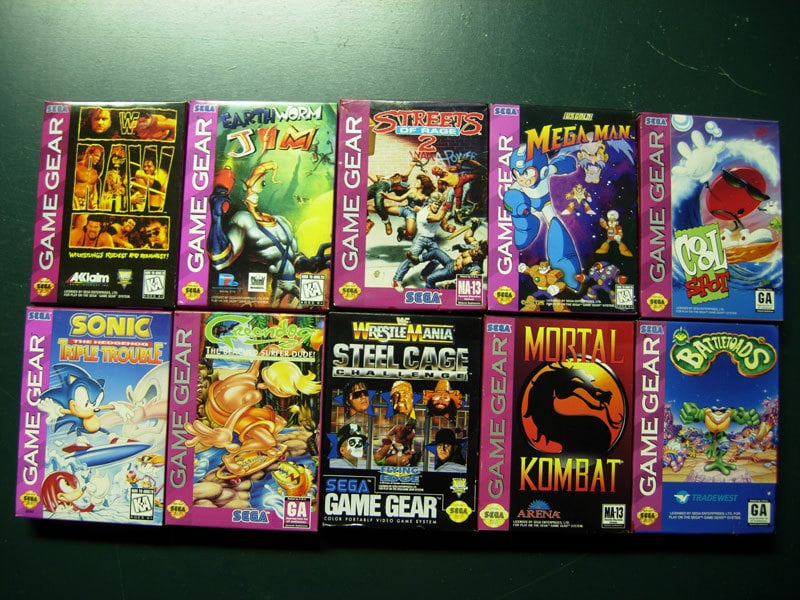 Sega Game Gear Lot of 10 Empty Game Boxes – WWF Raw, EWJ, Streets of Rage 2, Mega Man, Cool Spot, Sonic Triple Trouble, Greendog, Wrestlemania Steel Cage, Mortal Kombat & Battletoads.