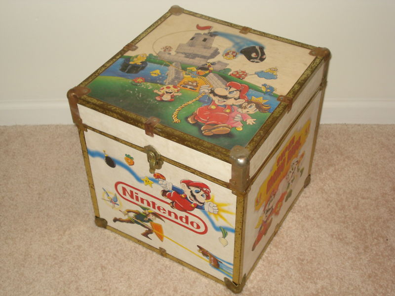 Vintage 1980’s Super Mario Nintendo Wooden Storage Box – Storage Box featuring Super Mario Bros. and The Legend of Zelda. Thanks Brett!