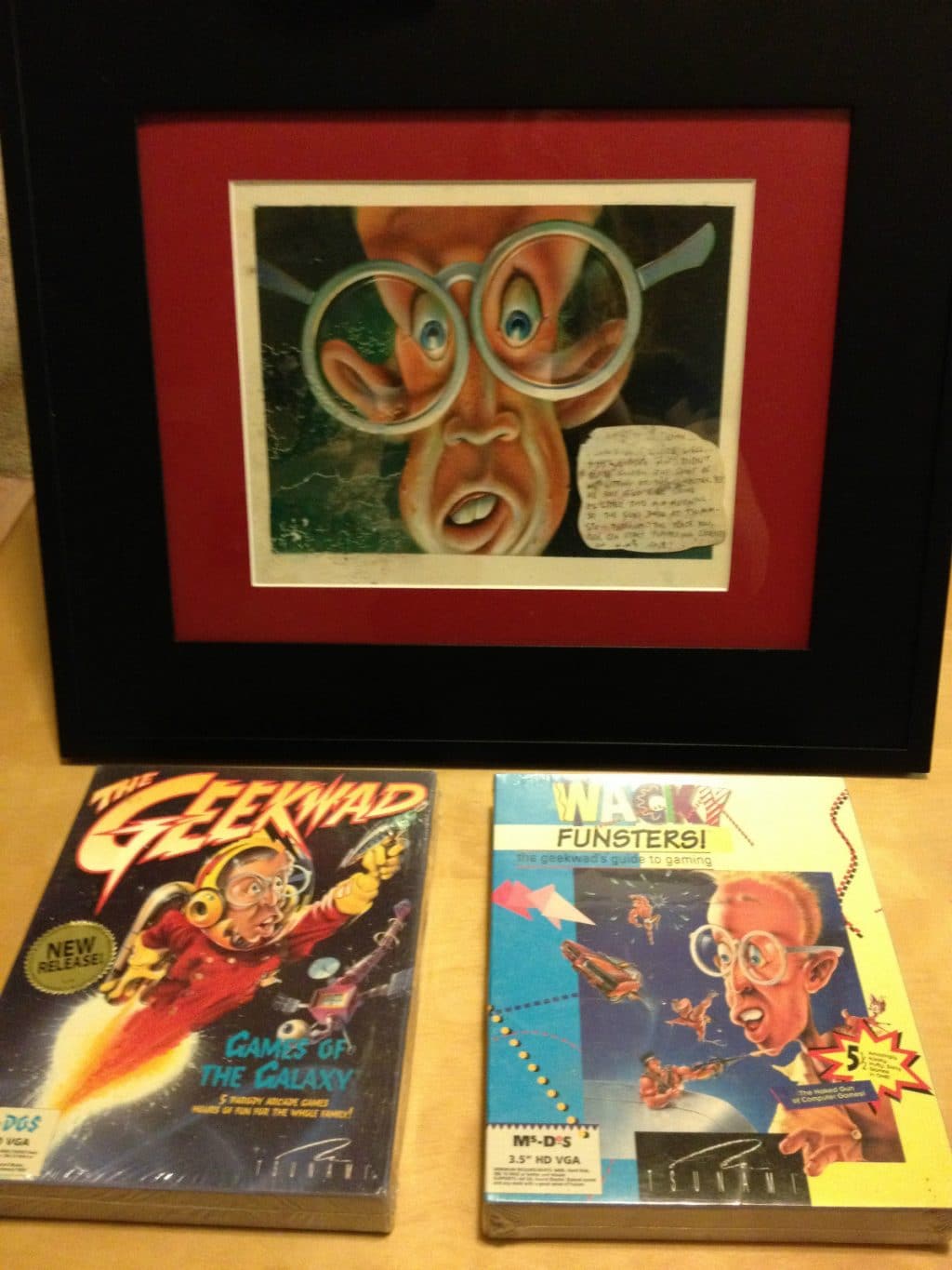 Sierra Tsunami – GeekWad Games & Orignal Art Work – Tsunami was founded by several members of Sierra On-Line that had left and was very short lived. It includes sealed GeekWad games that are in mint condition and framed original art from the GeekWad Series (hand drawn/painted animation cell from game).