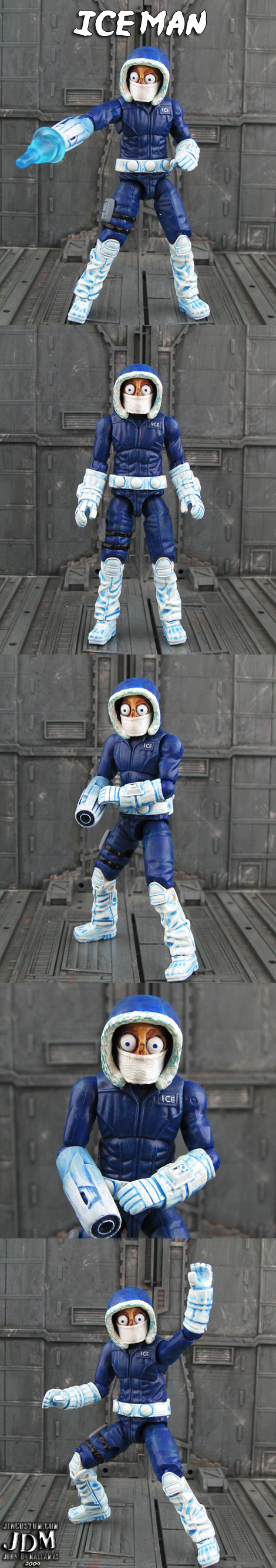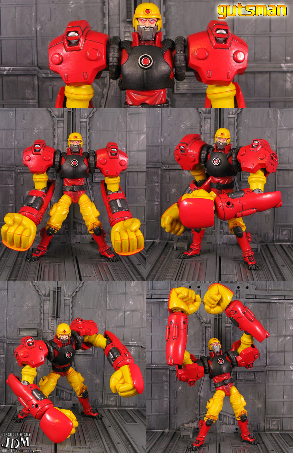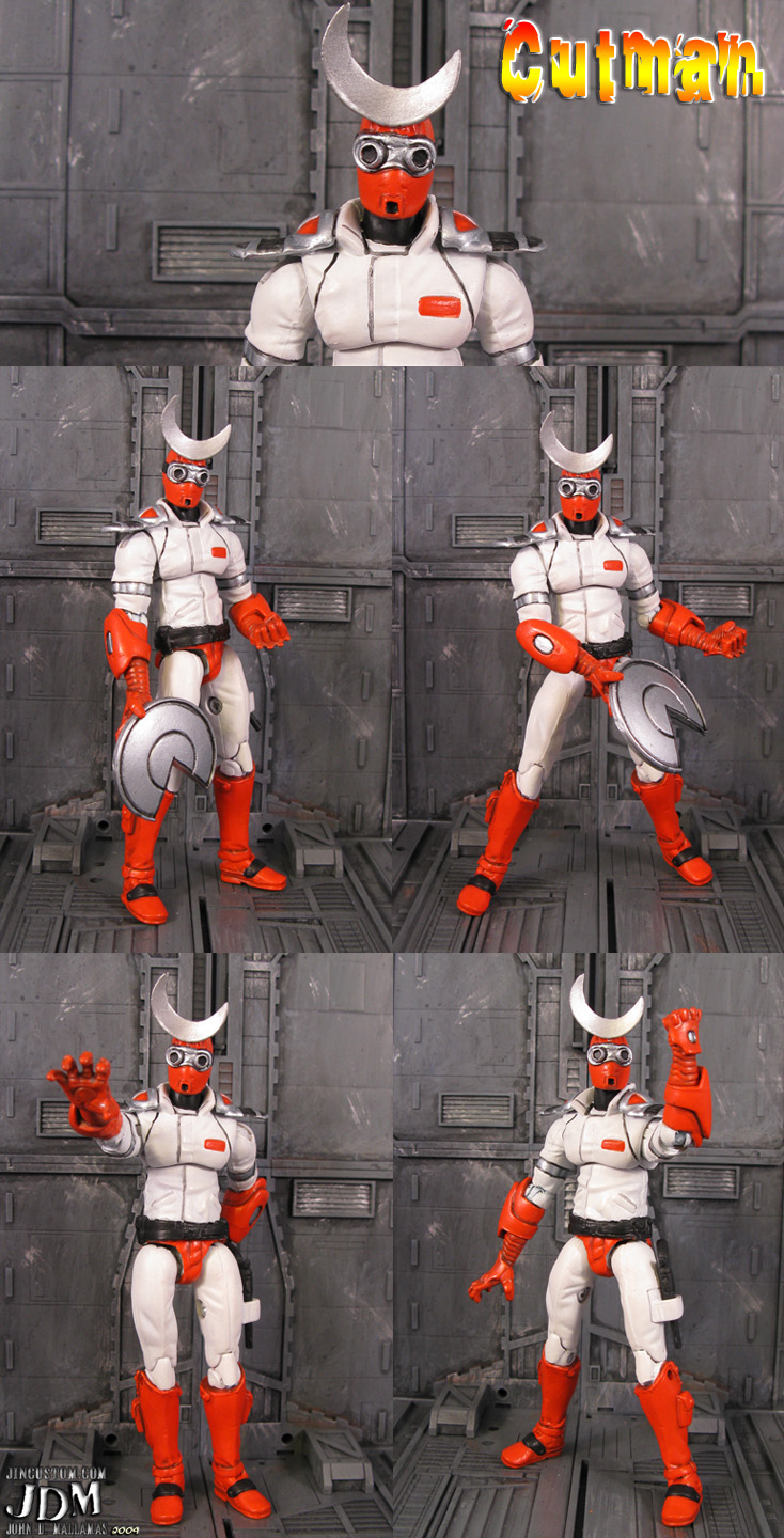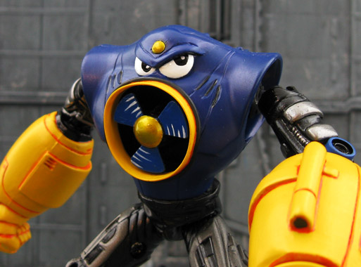 Not only did Jin Saotome (the customizer) create Air Man, but he’s done tons of Mega Man characters in this 25th anniversary GI Joe style. He’s previously created Ice Man, Bubble Man, Dr. Wily (with sphere), Tron Bonne (Yawn), Metal Man, Drill Man (reminds me of the Puppet Master movies), Cutman, Snakeman, Fire Man, Heatman, and Guts Man (my second favorite next to Air Man).