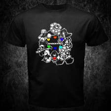 - Undertale T Shirt – Black shirt is priced at $18.99 and grey shirt at $14.99; this t-shirt is in limited supply. Featuring many of the characters from the game, this is great for any fan.