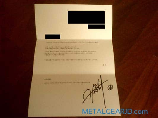 Metal Gear Solid Peace Walker Business Letter by Hideo Kojima – This is the business letter given to Kojima Productions Staff and Shareholders for the launch of MGS Peace Walker. Signed by Hideo Kojima.