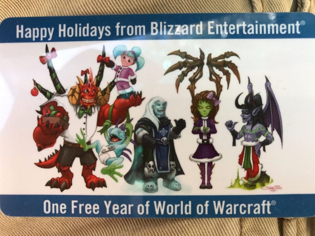 - One 1 year prepaid World of WarCraft Gift Card Blizzard Employee – RARE!!! – This is a great collector’s item. These RARE collectible pieces were only given to employees in their Holiday Christmas cards as bonuses.