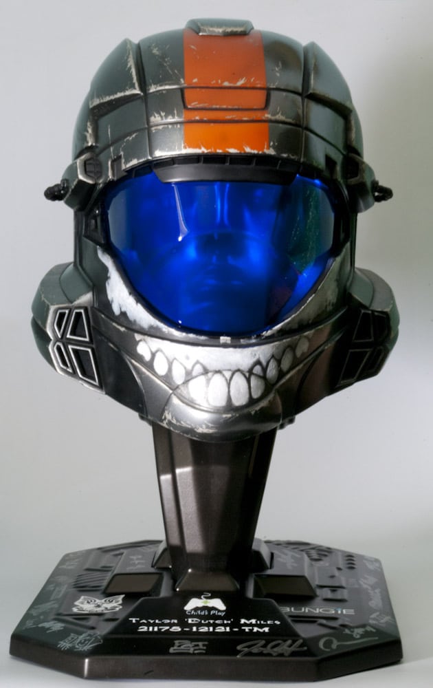 This auction is for a one of a kind, custom-made Halo ODST helmet based off the character Taylor “Dutch” Miles created by Sean Bradley in benefit of the Child’s Play Charity. The helmet was signed by actor Adam Baldwin the voice of the character “Dutch” while in Seattle and the base stand was taken to Bungie studios to be signed by ODST team in March 2012.