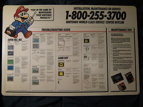 Nintendo NES SNES Store Rep Promo Display Service Center Work Mat – Displays easy fixes for the NES, SNES and original Gameboy.
