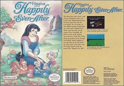 Yes, you read that right. This is the Nintendo copy, not Super Nintendo. The SNES version of Happily Ever After came out in 1994. But, only after a long convoluted history of the NES version that was supposed to release first, but never came to fruition. The game was actually connected to a movie made in 1985 by Filmation Associates, a sequel to Snow White and the Seven Dwarfs. The animated film, original called Snow White and the Seven Dwarfelles but changed to Happily Ever After on Disney’s orders, was finished in 1988. However, it wasn’t released until Memorial Day weekend of 1993 (it opened with Super Mario Bros.). So it’s pretty obvious that the film ran into a few snags along the way. The same can be said for the game. Here’s a brief rundown of the timeline: