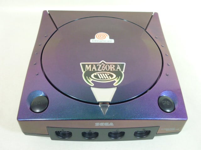 Sega Dreamcast Maziora LE System – Released in August 1999 with only 500 units, 200 of which were signed. Has a paintjob with a “twotone” greeny/purpley effect (occasionally yellow too depending on lighting conditions) and also has the Maziora logo on both the orange box and the DC itself.