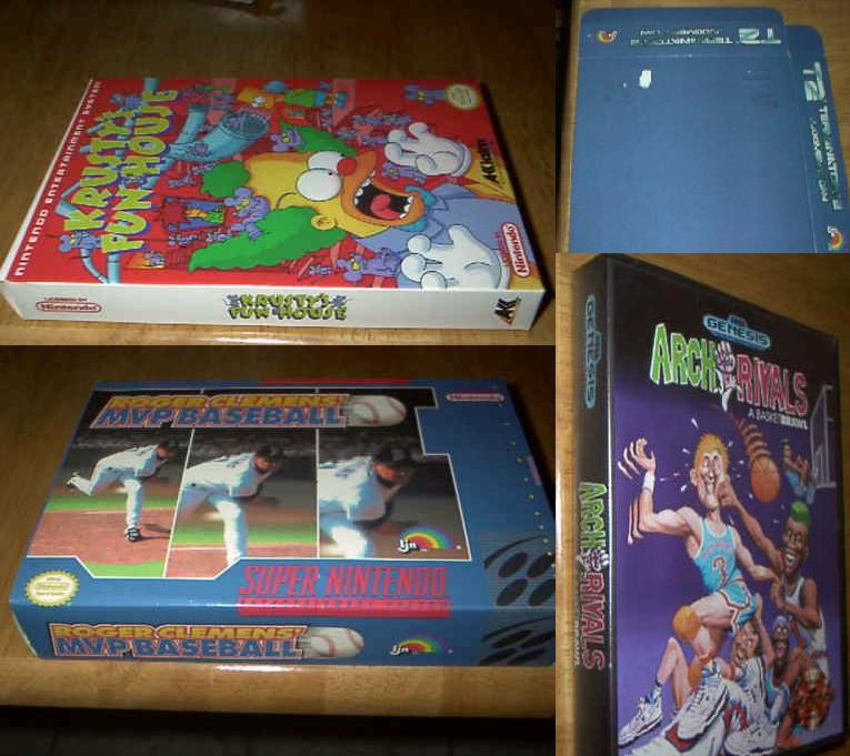 As far as my collecting interests are concerned, these are probably the most exciting and interesting items I have seen so far this year on ebay. There really isn’t a term for these. Prototype boxes? Sample boxes? Pre-production boxes? Semantics aside, these were used at CES around the early 90’s to showcase new and upcoming games from LJN and Acclaim for the NES, SNES, Gameboy and Sega Genesis. The boxes have art on the front and sides, though the backs are void of text or in game pictures since they were basically taped to a wall for display. Glancing through, I already see a few that are different from the final release art. Some of these box mockups were used for ‘Vanity Shots’ in an Acclaim/LJN Media Kit that I have possession of (though the pictures are in black and white). These are very neat to say the least!