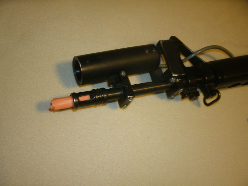 The M.A.C.S. were designed by the Military to train soldiers in bootcamp back when the Super Nintendo was in its heyday. The gun was essentially a real M16 (actually a Jäger AP 74 – a M16A2 clone), only stripped down and modified to work with a specially designed game cartridge. The gun itself is far more accurate than the Super Scope and has an authentic weight and feel. It still has sights for aiming, and the light sensor is within the barrel.