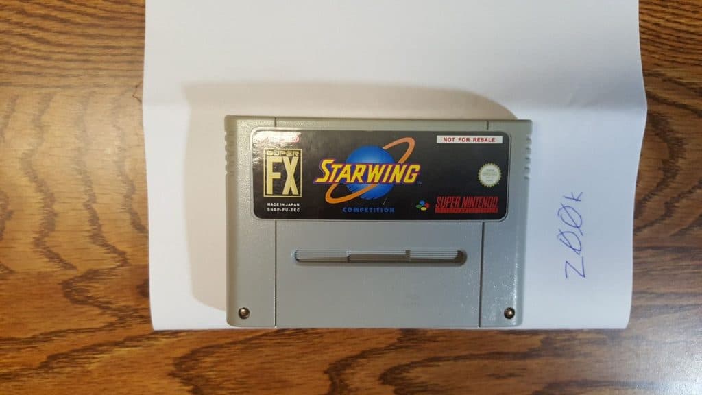 The first is StarFox Super Weekend. StarFox Super Weekend was only made available for one weekend in the spring of 1993. If you’re familiar with this cart, you know that only about 2000 were ever made for that competition weekend making this listing a truly rare find.