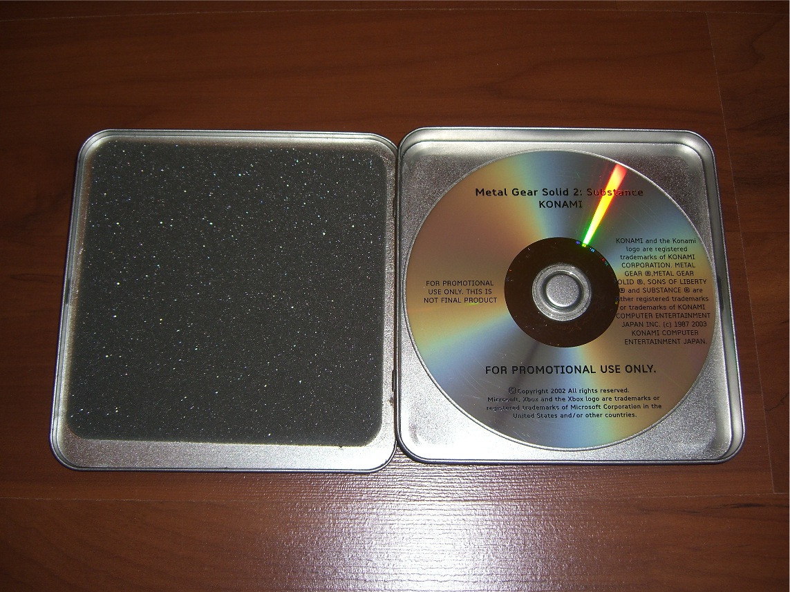 It’s basically a rare promo item from 2002 which was was sent out to journalists prior to Metal Gear Solid 2: Substance’s release. It’s a very nice looking Konami metal tin, with the disc inside.