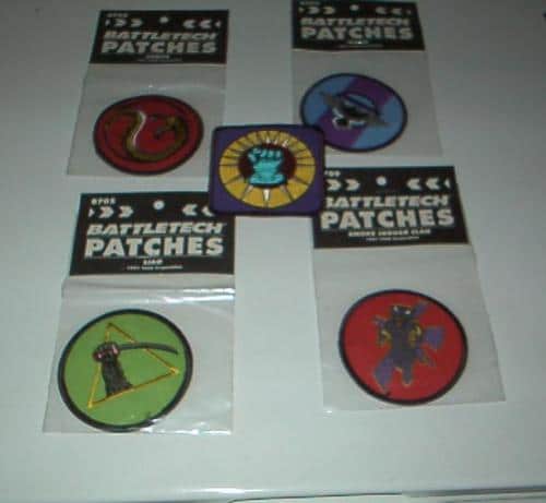 Embroidered patches for Battletech from 1991 – Kurita, Marik, Liao, Smoke Jaguar Clan and Federated Commonwealth.