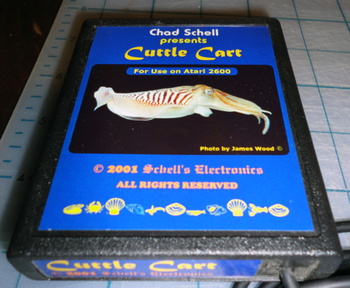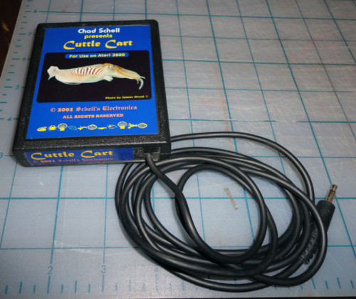 Atari 2600 Cuttle Cart 1 with Manual & Stella CD – Released in 2001, the Cuttle Cart was created by Chad Schell and allows you to load ROMs (retail, homebrew, tech demos, etc.) to the system via audio jack. Only 204 of these were ever made.
