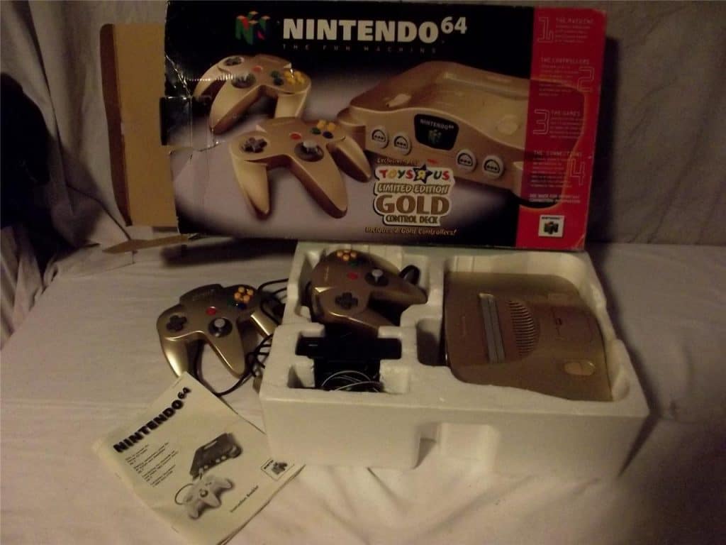 Toys ‘R Us Gold Nintendo 64 System In Box – Includes everything to operate, and includes Mario Kart 64