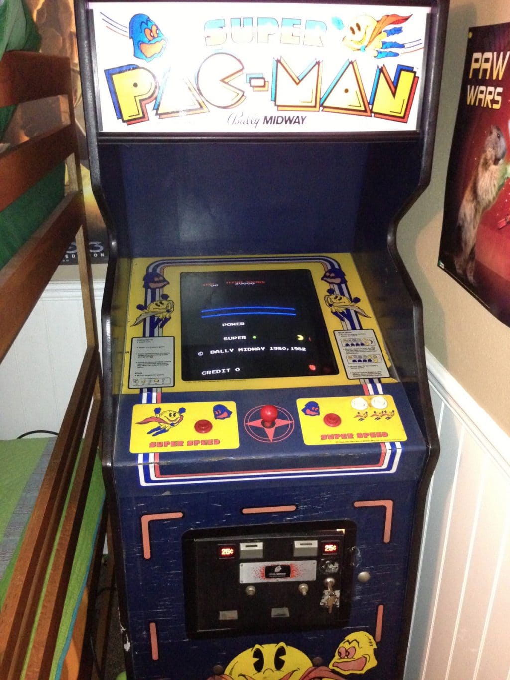 Super Pac-Man Arcade Cabinet – Local pick-up in California, definitely has seen better days but does have bids