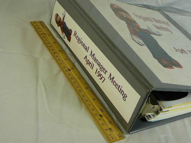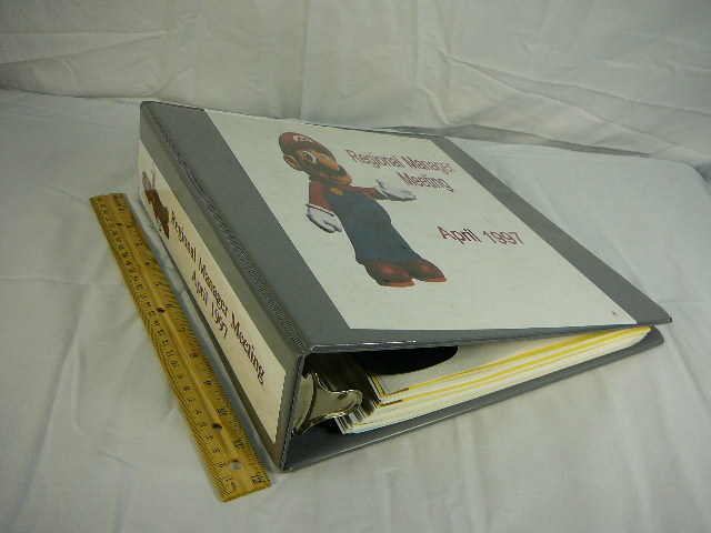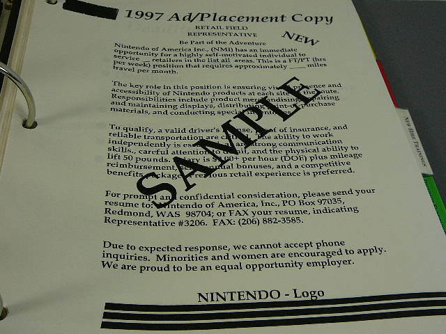 This was acquired directly from a former Nintendo employee. This auction includes an original 1997 Regional Managers Meeting Guidebook. Only available to management at the company, this book was only available at the April meeting and covers the entire contents of the meeting. Very rare, this volume has over 150 pages detailing the meeting and different criteria Nintendo was interested in covering. Never intended for sale on the public market. Never used and in mint condition, amazing display ability in any collection. Nintendo employee items rarely surface on the collecting market and if they do, they are generally not in this condition.