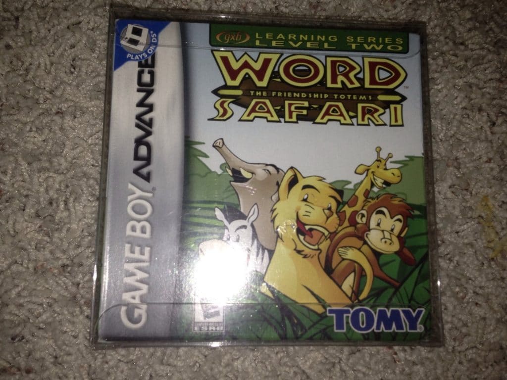 Word Safari GBA – A reader told me they had an alert on eBay and regularly checked Amazon for about three years and a single copy did not ever show up until early last year. It also was not listed on most rarity/completion lists until this year. The companion to this game, Math Patrol, is also pretty rare.