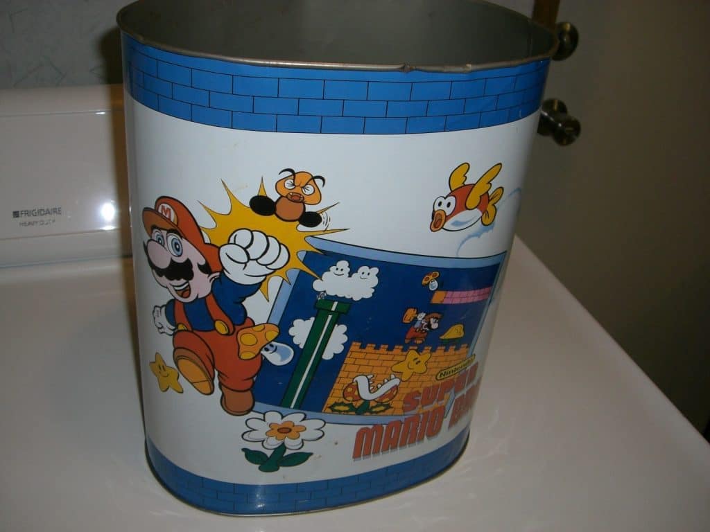Vintage Nintendo Super Mario Bros Metal Waste Basket Trash Can 1988