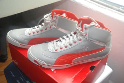 The game-themed footwear has a Forza Motorsport 3 logo embroidered tongue while the rubber outsole is said to be inspired by real motorsport tires. Avilable in grey and red, Puma sold only 324 pairs of the Speed Cat 2.9 FM3 in London Puma shops priced at £65 per pair.