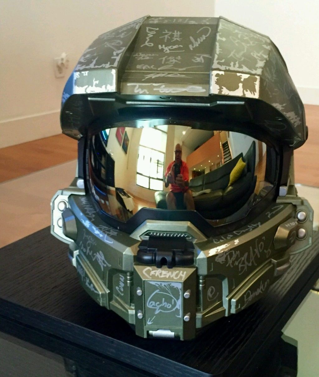 An incredibly rare Halo Master Chief Helmet was recently listed for sale on Ebay. Before you criticize me for calling this rare, only 2 of these official helmets were ever made. What makes this Halo Helmet even more valuable is the fact that it was signed by executives, engineers, designers, and other members of the development team who helped create and develop the post-Bungie Halo series.