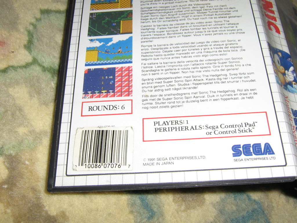 The Sega Master System version of Sonic was the last and final title in US, roughly in October of 1991. This game, along with several others (listed below) were originally released in PAL countries and instead of making an NTSC version, they just slapped some US UPC stickers on the cases and imported them. The reasoning was presumably that the Master System was basically dead in the States by that time. With Sega of America busy pushing the Genesis, these releases would not have been a priority.