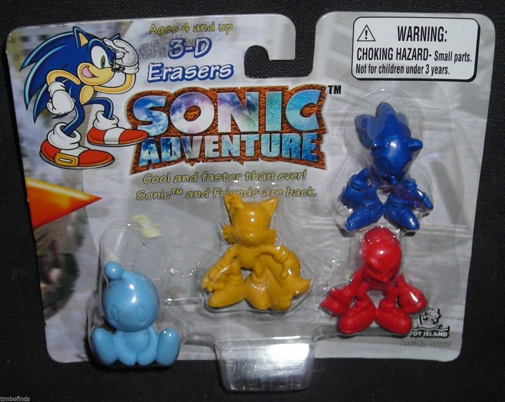 - SONIC ADVENTURE 3D ERASERS RARE FIND NICE NEW MOC TOY ISLAND VIDEO GAME FIGURES – $49.99 for a pack of 3D Sonic Adventure erasers? Definitely for the truly dedicated Sonic fan! These Toy Island erasers are super rare finds.
