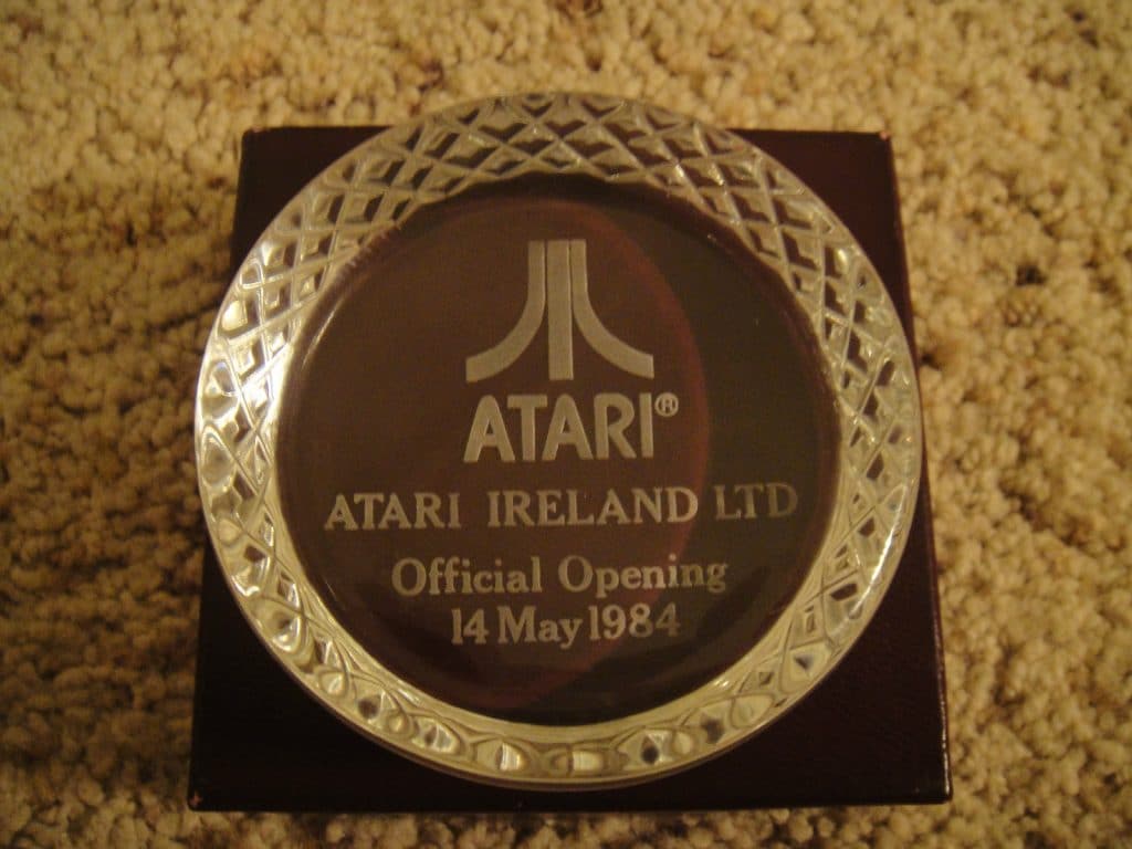 Vintage Atari HQ’s Crystal Grand Opening Ireland Location – A beautful etched crystal piece given to employees to celebrate the opening of Atari Ireland in 1984