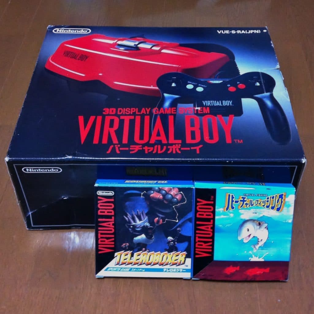 Virtual Boy + 2 games – JP Virtual Boy with Virtual Fishing and Teleroboxer. Good starter kit for prospective VB collectors