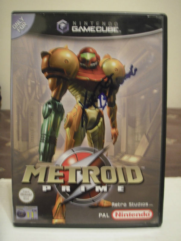 Metroid Prime signed by Yoshio Sakamoto – (Thanks Clayton) Signed by Nintendo Game Designer, Director, and Supervisor, Yoshio Sakamoto. This is a PAL version of the game, and it includes a business card from PR Manager Yasuhiro Minagawa.