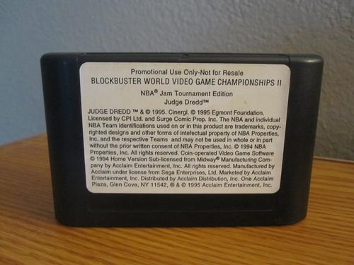 Apparently, in 1995 Blockbuster organized their second Video Game Championship. For SNES, Rare built the well known Donkey Kong Competition Edition cart. For Genesis, Acclaim made this cart.