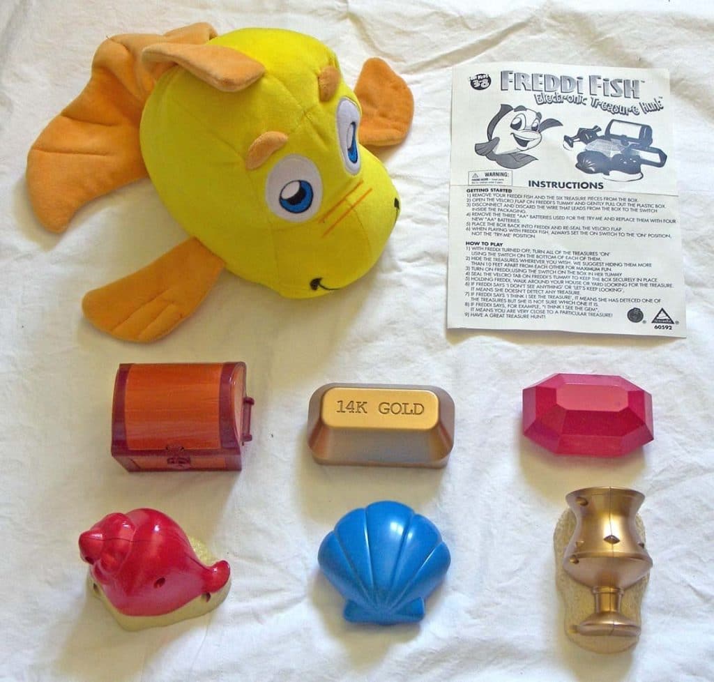 “Freddi Fish” Electronic Treasure Hunt 1999 Toymax / Humongous – Kid’s electronic game based off of the SCUMM point-and-click classic Freddi Fish by Humongous Entertainment