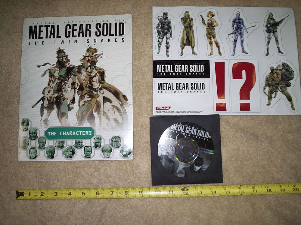 Metal Gear Solid: The Twin Snakes Press Kit – From the San Francisco launch party. It includes a fold-out dossier of the characters in the game, a DVD of assets including logos, screens, and MGS art, and a sheet of refrigerator magnets.
