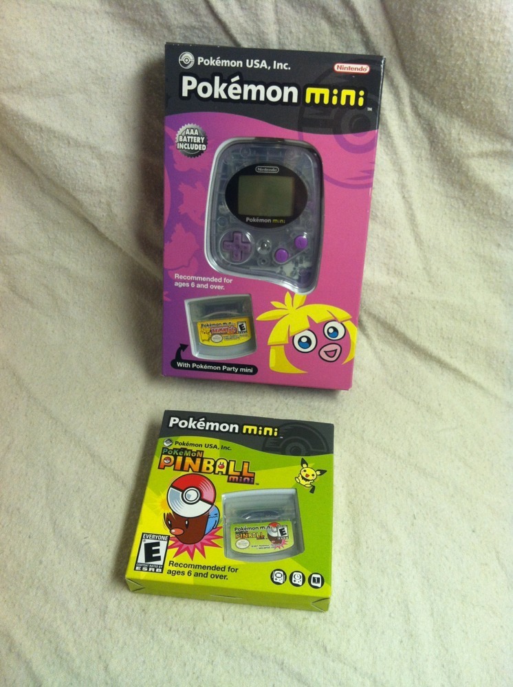 Brand New Pokemon Mini Smoochum Purple Pinball Mini – Nintendo’s effort to expand on the success of the Pocket Pikachu virtual pet line, the Pokemon Mini was a small black-and-white handheld with a meager handfull of Pokemon minigame cartridges released for it. The only place I saw the Mini sold in person was at Pokemon Center NYC (now Nintendo World) – god knows where else they sold these